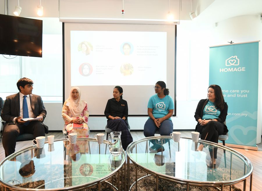 The panel featured a variety of insights from Universiti Putra Malaysia Institute of Gerontology director, National Welfare and Development Council of Malaysia (MAKPEM) Supreme Management committee member, Prof. Datuk Dr. Tengku Aizan Hamid; the Malaysian Ministry of Health Institute for Public Health, Public Health Medicine specialist & researcher, Dr. Rajini Sooryanarayana; Homage chief executive officer and co-founder, Gillian Tee; and Homage care professional, Vijitha Sivanjanam.
