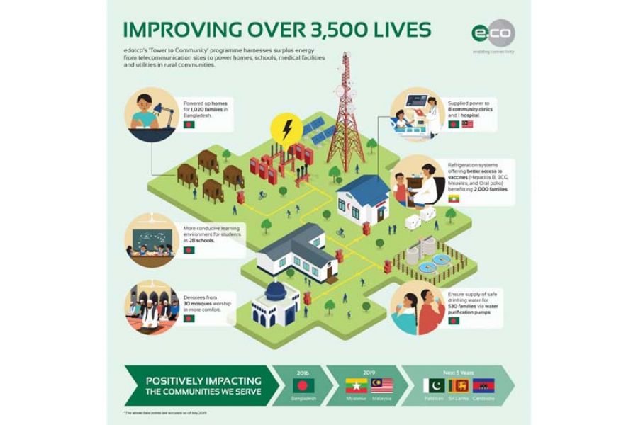 Kuala Lumpur, 30 August 2019 – edotco Group Sdn Bhd (“edotco”), the region’s end-to-end integrated telecommunications infrastructure services company, is improving the lives of over 3,500 people in the rural areas of Bangladesh, Myanmar, and Malaysia through its Tower to Community (T2C) programme.